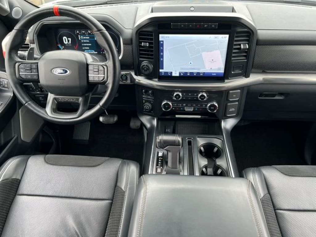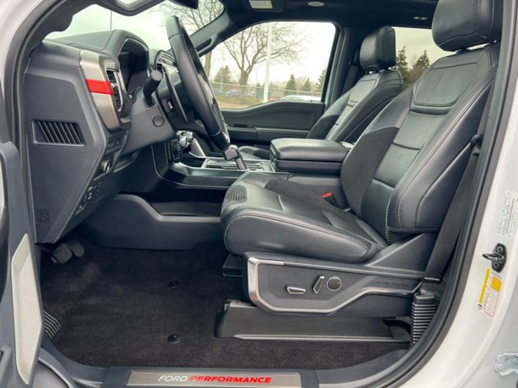 Blue Advantage Certified, 4WD, Connected Built-In Navigation, Convenience Package, Electronic Locking w/4.10 Axle Ratio, Equipment Group 801A High, Forward Sensing System, GVWR: 7,050 lbs Payload Package, Heated Steering Wheel, Interior Work Surface, Leather Trim Seats w/Heated 2nd Row, LED Projector w/Dynamic Bending Headlamps, Moonroof & Tailgate, Navigation system: Connected Navigation, Partitioned Lockable Fold-Flat Storage, Power Tailgate, Power Tilt/Telescoping Steering Column w/Memory, Radio: B&O Unleashed Sound System by Bang & Olufsen, Rain-Sensing Wipers, Raptor Carbon Fiber Package, Raptor Exterior Graphics Package, Tailgate Applique FORD, Torsen Package, Tow Technology Package, Twin Panel Moonroof, Universal Garage Door Opener, Wireless Charging Pad, 17" Cast Aluminum Wheels, 17" Forged Aluminum Bead-Lock Capable Wheels, 360 Degree Camera, 4-Wheel Disc Brakes, 7 Speakers, ABS brakes, Adaptive suspension, Adjustable pedals, Air Conditioning, Alloy wheels, AM/FM radio: SiriusXM with 360L, Auto High-beam Headlights, Auto Start-Stop Removal, Auto-dimming door mirrors, Auto-dimming Rear-View mirror, Automatic temperature control, Brake assist, Bumpers: body-color, Compass, Delay-off headlights, Driver door bin, Driver vanity mirror, Dual front impact airbags, Dual front side impact airbags, Electronic Stability Control, Emergency communication system, Engine Block Heater, Exterior Parking Camera Rear, Front anti-roll bar, Front Bucket Seats, Front Center Armrest, Front dual zone A/C, Front reading lights, Front wheel independent suspension, Front-Axle w/Torsen Differential, Fully automatic headlights, Heated door mirrors, Heated front seats, Illuminated entry, Integrated Trailer Brake Controller, Lane Departure Warning System, Leather Trim Seats, Low tire pressure warning, Memory seat, Occupant sensing airbag, Outside temperature display, Overhead airbag, Overhead console, Panic alarm, Passenger door bin, Passenger vanity mirror, Pedal memory, Power door mirrors, Power driver seat, Power passenger seat, Power steering, Power windows, Pro Trailer Backup Assist, Radio data system, Radio: AM/FM SiriusXM w/360L, Rear reading lights, Rear step bumper, Rear window defroster, Remote keyless entry, Rigid LED Fog Lamp, Security system, Speed control, Speed-sensing steering, Split folding rear seat, Steering wheel mounted audio controls, SYNC 4 w/Enhanced Voice Recognition, Tachometer, Telescoping steering wheel, Tilt steering wheel, Tough Bed Spray-In Bedliner, Traction control, Trip computer, Turn signal indicator mirrors, Variably intermittent wipers, Ventilated front seats, 4WD, Connected Built-In Navigation, Convenience Package, Electronic Locking w/4.10 Axle Ratio, Equipment Group 801A High, Forward Sensing System, GVWR: 7,050 lbs Payload Package, Heated Steering Wheel, Interior Work Surface, Leather Trim Seats w/Heated 2nd Row, LED Projector w/Dynamic Bending Headlamps, Moonroof & Tailgate, Navigation system: Connected Navigation, Partitioned Lockable Fold-Flat Storage, Power Tailgate, Power Tilt/Telescoping Steering Column w/Memory, Radio: B&O Unleashed Sound System by Bang & Olufsen, Rain-Sensing Wipers, Raptor Carbon Fiber Package, Raptor Exterior Graphics Package, Tailgate Appliqu