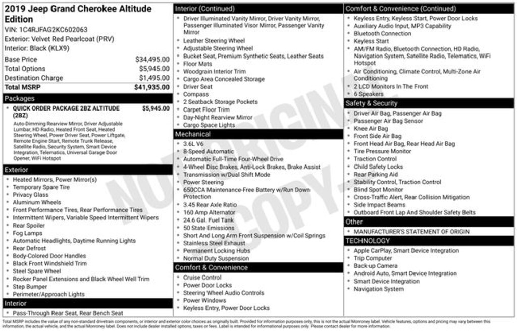 Velvet Red Pearlcoat 2019 Jeep Grand Cherokee Altitude 4D Sport Utility 4WD 8-Speed Automatic 3.6L V6 24V VVT