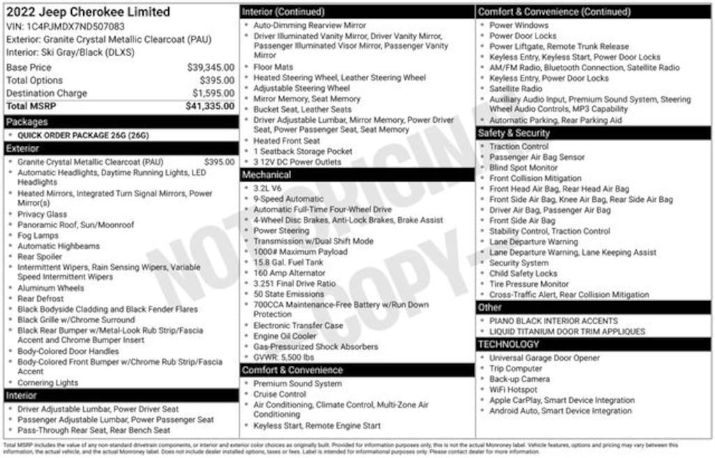 Granite Crystal Metallic Clearcoat 2022 Jeep Cherokee Limited 4D Sport Utility 4WD 9-Speed 948TE Automatic 3.2L V6