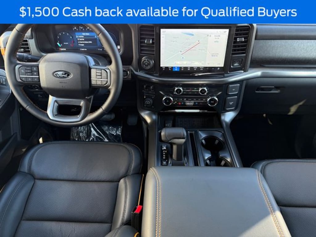 4WD, 2nd Row Heated Seats, 4 Pickup Box Tie-Down Plates, 4-Wheel Disc Brakes, 8 Speakers, ABS brakes, Adjustable pedals, Air Conditioning, Alloy wheels, AM/FM radio: SiriusXM with 360L, Ambient Lighting, Auto High-beam Headlights, Auto-dimming door mirrors, Auto-Dimming Rear-View Mirror, Auto-dimming Rear-View mirror, Automatic temperature control, Bed Utility Package, Brake assist, Bumpers: body-color, Compass, Console Worksurface, Delay-off headlights, Driver door bin, Driver vanity mirror, Dual front impact airbags, Dual front side impact airbags, Electronic Locking w/3.73 Axle Ratio, Electronic Stability Control, Emergency communication system: SYNC 4 911 Assist, Equipment Group 402A High, Front anti-roll bar, Front Axle w/Torsen Differential, Front Bucket Seats, Front Center Armrest, Front dual zone A/C, Front fog lights, Front reading lights, Front wheel independent suspension, Fully automatic headlights, GVWR: 7,100 lbs Payload Package, Hard Folding Tonneau Pickup Box Cover, Heads-Up Display, Heated door mirrors, Heated front seats, Heated Steering Wheel, Illuminated entry, Integrated Trailer Brake Controller, Internet access capable: FordPass Connect 5G, LED Box Lighting, LED Taillamps, Low tire pressure warning, Media Bin Door, Mobile Office Package, Modular Front Bumper & Carbon Black Rear Bumper, Navigation system: Connected Navigation, Occupant sensing airbag, Outside temperature display, Overhead airbag, Overhead console, Panic alarm, Partitioned Lockable Rear Storage, Passenger door bin, Passenger vanity mirror, Power door mirrors, Power driver seat, Power Glass Heated Sideview Mirrors, Power passenger seat, Power steering, Power Tailgate, Power windows, Power-Adjustable Pedals w/Memory, Premium Wrapped Steering Wheel, Radio data system, Radio: B&O Sound System by Bang & Olufsen, Radio: B&O Unleashed Sound System by Bang & Olufsen, Rain-Sensing Wipers, Rear reading lights, Rear step bumper, Rear window defroster, Remote keyless entry, Security system, Speed control, Split folding rear seat, Steering wheel mounted audio controls, SYNC 4 w/Enhanced Voice Recognition, Tachometer, Tailgate Step w/Tailgate Work Surface, Telescoping steering wheel, Tilt steering wheel, Tough Bed Spray-In Bedliner, Tow/Haul Package, Traction control, Tray Style Floor Liner w/Carpet Mats, Trip computer, Turn signal indicator mirrors, Twin Panel Moonroof, Two-Speed Automatic AWD w/Mechanical Locking 4WD, Unique Sport Cloth 40/Console/40 Power Front Seat, Unique Tremor Leather-Trimmed Bucket Seats, Universal Garage Door Opener, Variably intermittent wipers, Voltmeter, Wheels: 18" Alloy w/Dark Matte Finish, Wireless Charging, 4WD.