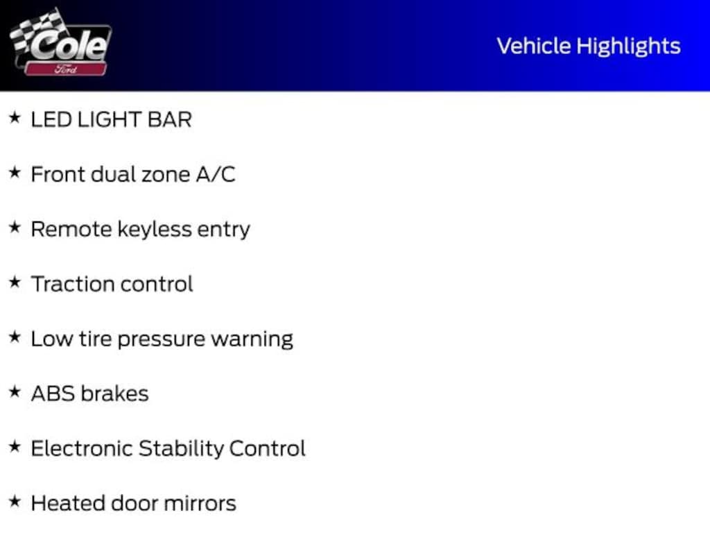 LED LIGHT BAR, 4WD, ABS brakes, Alloy wheels, Compass, Electronic Stability Control, Front dual zone A/C, Heated door mirrors, Heated front seats, Heated rear seats, Illuminated entry, Low tire pressure warning, Remote keyless entry, Traction control.