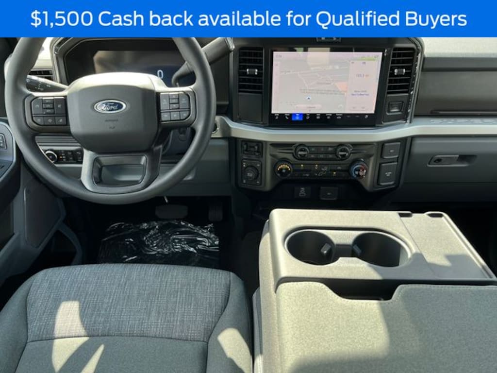 4WD, 4-Wheel Disc Brakes, 5th Wheel/Gooseneck Hitch Prep Package, 6 Speakers, 6" Ebony Black Angular Running Boards, ABS brakes, Air Conditioning, All-Weather Floor Mats, Alloy wheels, AM/FM radio, Auto High-beam Headlights, Black Appearance Package, Black Painted Front Grille Surround, Body Color Front and Rear Bumpers, Body-Color Door Handles, Brake assist, Bright Chrome Grille with Chrome Inserts, Bumpers: chrome, Cloth 40/20/40 Split Bench Seat, Compass, Delay-off headlights, Driver door bin, Driver vanity mirror, Dual AGM 68 AH Battery, Dual front impact airbags, Dual front side impact airbags, Electrochromic Self-Dimming Rear-View Mirror, Electronic Stability Control, Emergency communication system: SYNC 4 911 Assist, Engine Block Heater, Exterior Parking Camera Rear, Fixed Rear Window with Privacy Glass and Defrost, Ford Connectivity Package (1-Year Included), Front anti-roll bar, Front Center Armrest w/Storage, Front fog lights, Front reading lights, Fully automatic headlights, FX4 Off-Road Package, Gooseneck Hitch Kit, GVWR: 10,000 Lb Payload Package, GVWR: F-250 >10K Package, Heated door mirrors, High Capacity 11.6" Axle Upgrade Package, Hill Descent Control, Illuminated entry, Intelligent Access with Push-Button Start, Internet access capable: 5G Modem - Ford Connectivity Package, LED Roof Clearance Lights, Low tire pressure warning, Off-Road Specifically Tuned Shock Absorbers, Onboard Scales and Smart Hitch, Order Code 603A, Outside temperature display, Overhead airbag, Overhead console, Panic alarm, Passenger door bin, Passenger vanity mirror, Power door mirrors, Power driver seat, Power steering, Power windows, Power-Sliding Rear-Window with Defrost, Privacy Glass, Pro Power Onboard - 2kW, Programmable Engine Idle Shutdown Timer, Radio: AM/FM Stereo with MP3 Player, Rear reading lights, Rear step bumper, Remote keyless entry, Remote Tailgate Release, SecuriCode Keyless Entry Keypad (driver's Side), Security system, SiriusXM with 360L (3-Year Plan), Snow Plow Prep Package, Speed control, Split folding rear seat, Steering wheel mounted audio controls, SYNC 4, Tachometer, Tailgate Step and Handle, Telescoping steering wheel, Tilt steering wheel, Traction control, Trip computer, Turn signal indicator mirrors, Unique FX4 Off-Road Box Decal, Upfitter Switches (6), Variably intermittent wipers, Wheels: 18" Sparkle Silver Painted Cast Aluminum, XLT Premium Package, 4WD.
