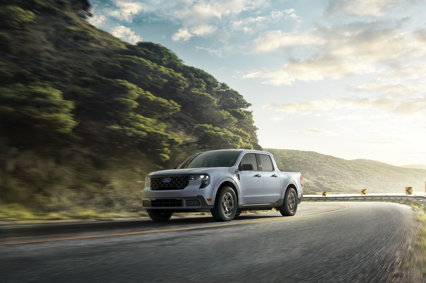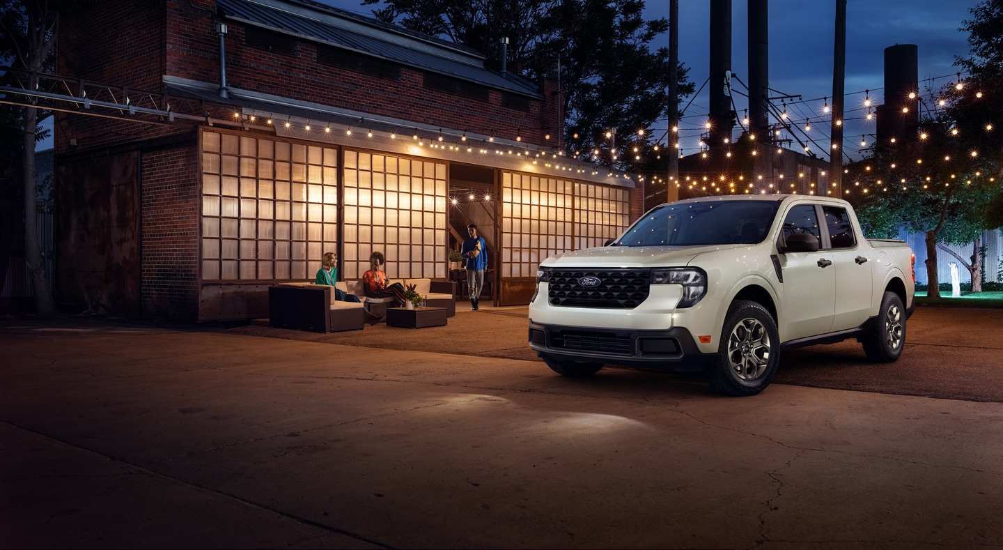 The Ford Maverick is unique for its FLEXBED® Storage System that allows you to organize and secure personal gear your way. Tie-downs double as bottle openers for your tailgate party. The Ford Maverick's Multi-Position Tailgate can be locked half-closed to tie longer items and lay them down flat. In-bed cubby storage comes in handy, and there is 33 cubic feet of space inside the sidewalls and tailgate of the Ford Maverick. The truck bed of the new Ford Maverick extends 54 inches. You can get in-bed power from the Ford Maverick's two standard pre-wired 12-volt connections. Keep your mini fridge or power tools running. LED Projector Headlamps for the new Ford Maverick provide superior illumination on towing journeys.