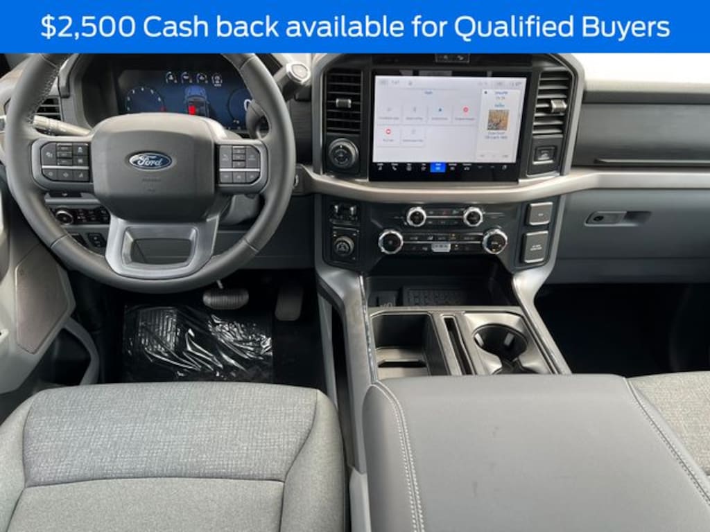 4WD, 18" Painted Aluminum Wheels, 360 Degree Camera, 4 Pickup Box Tie-Down Plates, 4-Wheel Disc Brakes, 400W Pro Power Onboard (cab & Bed), 6 Speakers, ABS brakes, Adaptive Cruise Control with Stop and Go, Air Conditioning, Alloy wheels, AM/FM radio: SiriusXM with 360L, Auto High-beam Headlights, Auto-Dimming Rear-View Mirror, Bed Storage Boxes, Bed Utility Package, Brake assist, Bumpers: body-color, Chrome Front and Rear Bumpers, Cloth 40/Console/40 Front Seats, Compass, Console Worksurface, Delay-off headlights, Driver door bin, Driver vanity mirror, Dual front impact airbags, Dual front side impact airbags, Dual-Zone Electronic Automatic Temperature Control, Electronic Stability Control, Emergency communication system: SYNC 4 911 Assist, Equipment Group 303A High, Ford Co-Pilot360 Assist 2.0, Ford Connectivity Package (1-Year Included), Front anti-roll bar, Front Center Armrest, Front fog lights, Front Parking Sensors, Front reading lights, Front wheel independent suspension, Fully automatic headlights, FX4 Off-Road Package, Heated door mirrors, Heated Front Seats, Illuminated entry, Intelligent Access with Push Button Start, Internet access capable: 5G Modem - Ford Connectivity Package, LED Box Lighting, Low tire pressure warning, Manual-Folding Heated Power Glass Trailer Tow Mirror, Mobile Office Package, Occupant sensing airbag, Outside temperature display, Overhead airbag, Overhead console, Panic alarm, Partitioned Lockable Rear Storage, Passenger door bin, Passenger vanity mirror, Power door mirrors, Power Glass Heated Sideview Mirrors, Power steering, Power windows, Power-Adjustable Pedals, Power-Sliding Rear Window, Radio data system, Radio: AM/FM Stereo with SiriusXM 360L, Radio: B&O Sound System by Bang and Olufsen, Rear reading lights, Rear step bumper, Rear window defroster, Remote keyless entry, Remote Start System with Remote Tailgate Release, Security system, SiriusXM with 360L (3-Year Plan), Speed control, Split folding rear seat, Steering wheel mounted audio controls, SYNC 4 with Enhanced Voice Recognition, Tachometer, Tailgate Step with Work Surface, Telescoping steering wheel, Tilt steering wheel, Tough Bed Spray-in Bedliner, Tow/Haul Package, Towing Technology, Traction control, Trip computer, Variably intermittent wipers, Wheel Well Liner, Wrapped Steering Wheel, XLT Chrome Appearance Package, 4WD.