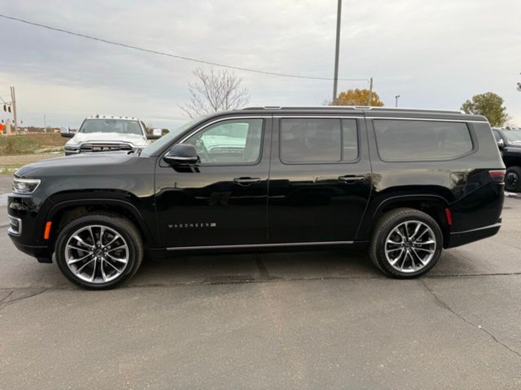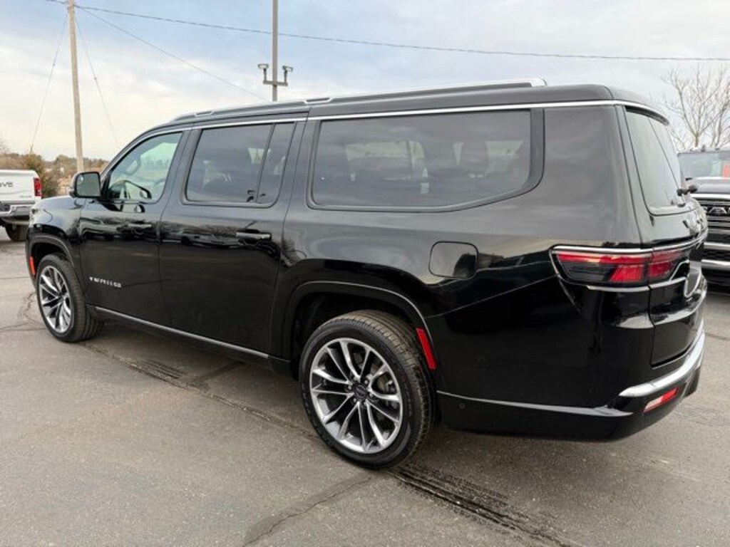 10 Speakers, 19 Speaker McIntosh Audio System, 2nd Row Manual Window Shades, 3 Panel Sunroof, 3.55 Rear Axle Ratio, 3rd row seats: bench, 4-Wheel Disc Brakes, 40/20/40 2nd Row Bench Power Tip/Slide, 8-Passenger Seating, ABS brakes, Adjustable pedals, Adjustable Roof Rail Crossbars, Air Conditioning, All-Season Floor Mats, Alloy wheels, AM/FM radio: SiriusXM with 360L, Amazon Fire TV Built-In, Anti-whiplash front head restraints, Apple CarPlay/Android Auto, Audio memory, Auto High-beam Headlights, Auto-dimming door mirrors, Auto-dimming Rear-View mirror, Auto-leveling suspension, Automatic temperature control, Brake assist, Bumpers: body-color, Cargo Tray, Compass, Convenience Group I, Delay-off headlights, Driver door bin, Driver vanity mirror, Driver's Seat Mounted Armrest, Drowsy Driver Detection, Dual front impact airbags, Dual front side impact airbags, Electronic Stability Control, Emergency communication system: Wagoneer Connect, Exterior Parking Camera Rear, Flexible Seating Group, Four wheel independent suspension, Front anti-roll bar, Front Bucket Seats, Front Center Armrest w/Storage, Front dual zone A/C, Front fog lights, Front reading lights, Full Length Floor Console, Fully automatic headlights, Garage door transmitter, Genuine wood console insert, Genuine wood dashboard insert, Genuine wood door panel insert, Heated door mirrors, Heated front seats, Heated rear seats, Heated steering wheel, Illuminated entry, Intersection Collision Assist System, Knee airbag, Leather Trimmed Bucket Seats, Low tire pressure warning, Luxury Front & Rear Floor Mats, Memory seat, MOPAR Interior Protection Package, Navigation System, Normal Duty Suspension, Occupant sensing airbag, Outside temperature display, Overhead airbag, Overhead console, P&P Park & Unpark Assist w/Stop System, Panic alarm, Passenger door bin, Passenger seat mounted armrest, Passenger vanity mirror, Pedal memory, Power adjustable front head restraints, Power Deployable Running Boards, Power door mirrors, Power driver seat, Power Liftgate, Power passenger seat, Power steering, Power windows, Premium Group I, Quick Order Package 25N, Rack Cargo Management System, Radio data system, Radio: Uconnect 5 Nav w/10.1" Display, Rain sensing wipers, Rear air conditioning, Rear anti-roll bar, Rear reading lights, Rear seat center armrest, Rear Seat Video Group 1, Rear window defroster, Rear window wiper, Reclining 3rd row seat, Remote keyless entry, Reversible Carpet/Vinyl Cargo Mat, Seatback Video Screens, Security system, Side Distance Warning, Speed control, Speed-sensing steering, Speed-Sensitive Wipers, Split folding rear seat, Steering wheel memory, Steering wheel mounted audio controls, Surround View Camera System, Tachometer, Telescoping steering wheel, Tilt steering wheel, Traction control, Traffic Sign Recognition, Trip computer, Turn signal indicator mirrors, Variably intermittent wipers, Ventilated front seats, Video USB Port, Voltmeter, Wheels: 22" x 9.0" Premium 3 Aluminum.